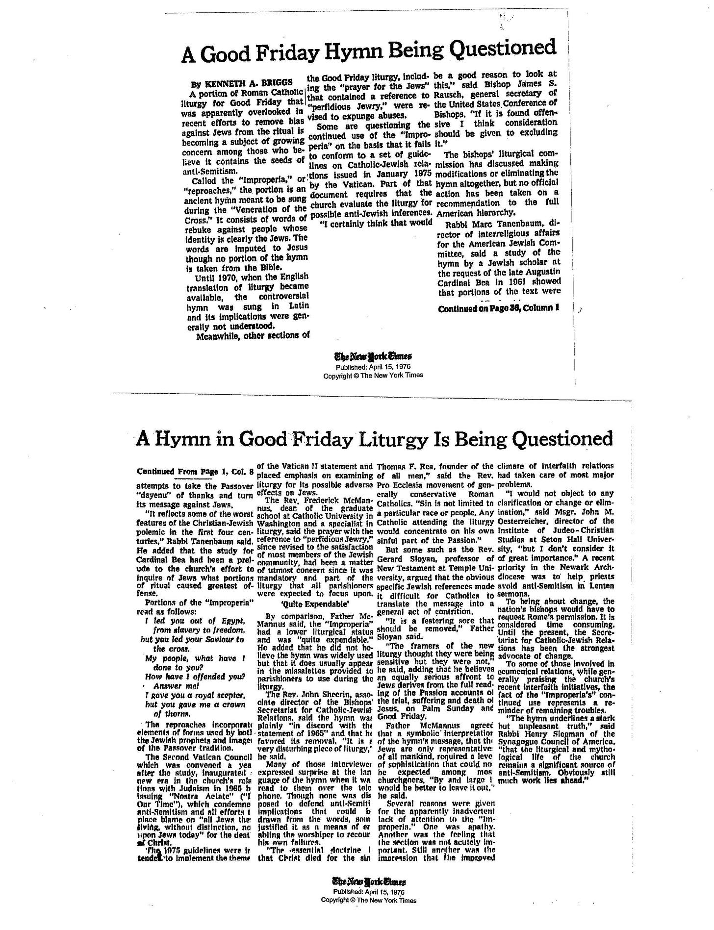 Reproaches NYT 1976